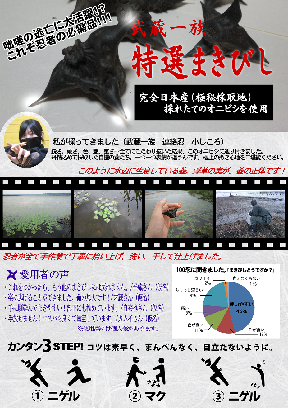 まきびしについても脳にガツンと記憶として残ったかと思います、まきびしを愛そう。
