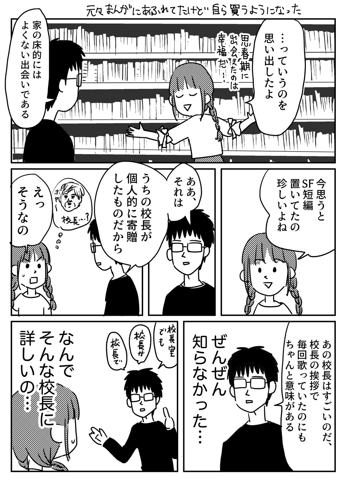思春期に夢中になったものの影響ってすごいよねって話 2019年09月25日 寄贈のこととか他誰からも聞いたことなかったよ… 今日の漫画、漫画オタク以外読んでも楽しくない気がしたので好きに描きました。 私は出木杉くんとスネ吉兄さんが好きです。 出木杉警察なので、もし出来杉って言い出したら全員訂正入れますのでよろしくお願いします。 絶版とか書きましたけど今Kindleで普通にありました。 わしが買おうとしてた時には絶版だったんじゃ…(老人の呟き) ↓読者登録すると、LINE通知で更新情報が届きます↓応援クリック嬉しいです!おもしろ日記ランキングにほんブログ村 「漫画」カテゴリの最新記事 タグ :#藤子F不二雄#中学生#兄#SF短編 < 前の記事次の記事 > コメント コメント一覧 (5) 1. むぅ 2019年09月26日 06:49 藤子不二雄のミノタウロスの皿が好きです 0 恵水 がしました 2. 恵水 2019年09月27日 09:50 >>1 王道ですね〜! 0 恵水 がしました 3. ぽてと 2019年12月14日 13:11 F信者になったのも異色短編集とT・Pぼんがきっかけです あの四冊だけでこの世の漫画全部抹消しても良いくらい面白いのでは…?と思い込んでいた過激派でもあります笑 ちなみに周りに薦めたら10割絶賛&高評価でした笑 「定年退職」の最後のコマの「わしらのせきは、もうどこにもないのさ」はFのセンスが凝縮されてました 0 恵水 がしました 4. ぽてと 2019年12月14日 18:28 >>3 「定年退食」だった‥ 0 恵水 がしました 5. 恵水 2019年12月20日 20:40 >>3 TPぼんも大好きです!!!!!!!リームはいい女だ。 「異色」とはありますが、Fの凄さを一般人に分かりやすく伝える最も布教しやすい本だと思っています。ドラえもん他の凄さは結構馴染み過ぎてわかりやすいので… 0 恵水 がしました コメントフォーム 名前 コメント 記事の評価 リセット リセット 顔 星 情報を記憶 コメントを投稿する