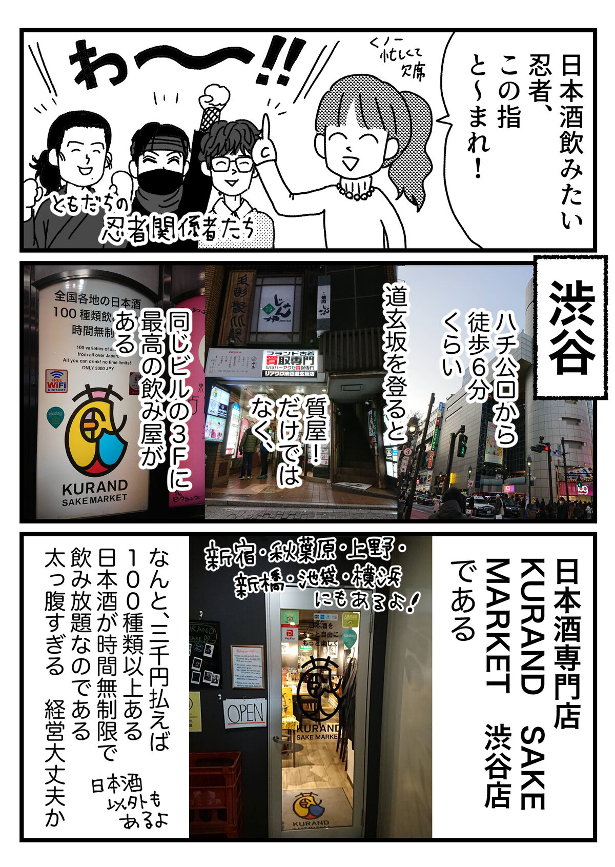 【PR】KURAND SAKE MARKET 渋谷店さんで忍者とプチ新年会してきましたって話 2020年01月10日 コスパいいし参加者全員大満足でした!是非!果実酒専門店の方ではないですが、それでも珍しい果実酒充分な種類置いてあるし、飲みたければビールも飲めますよ!主に習志野さんがこの新年会でPRに一切ならない「個」で面白行動が多く、描かないのもったいないのでPRでは全然ないいつもどおりな漫画も別で描きます。飲み過ぎには気をつけましょうね…(自分へ) ↓読者登録すると、LINE通知で更新情報が届きます↓応援クリック嬉しいです!おもしろ日記ランキングにほんブログ村 「忍者」カテゴリの最新記事 タグ :#PR#忍者#日本酒#習志野さん#嵩丸さん < 前の記事次の記事 > コメント コメントフォーム 名前 コメント 記事の評価 リセット リセット 顔 星 情報を記憶 コメントを投稿する