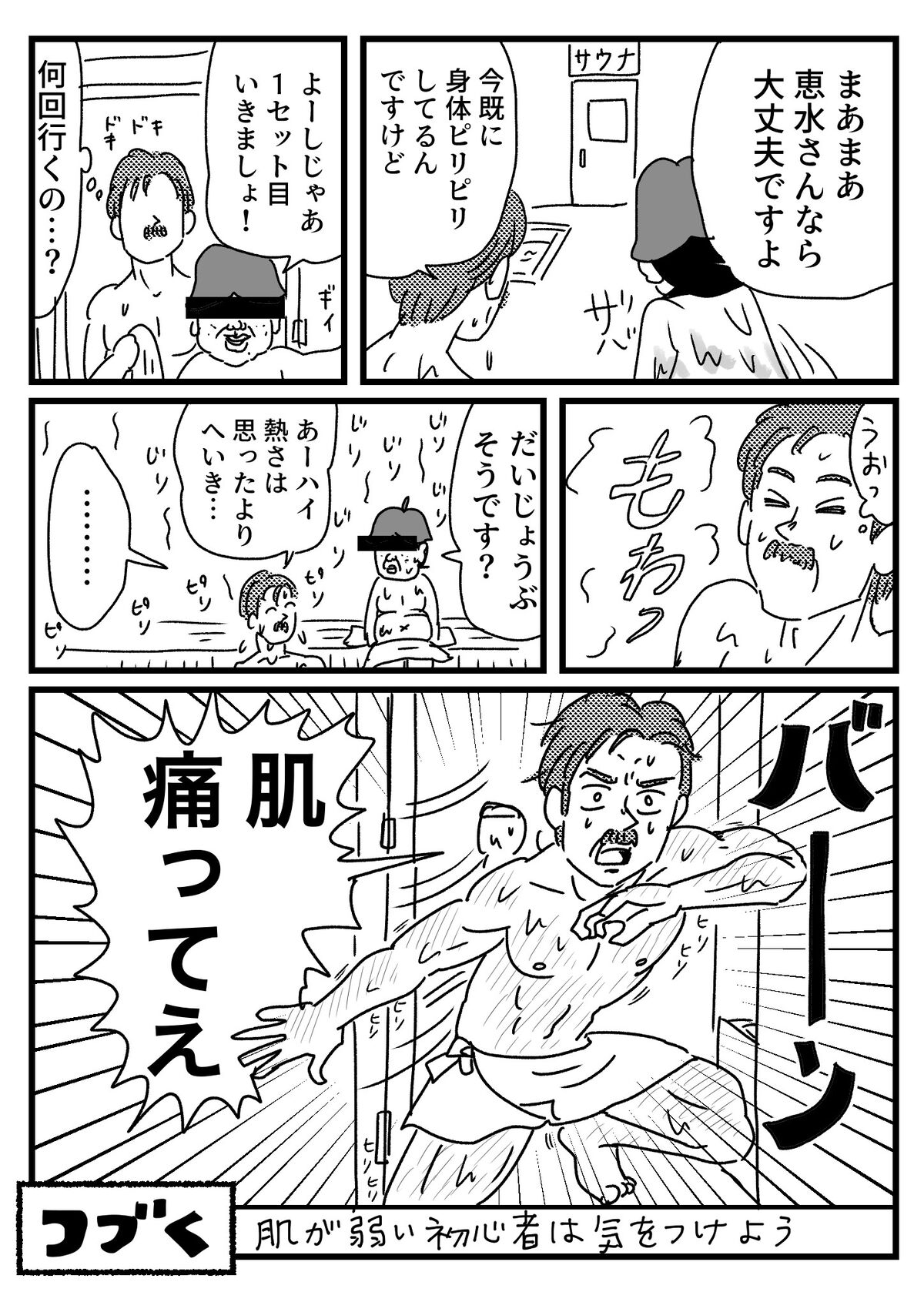 初心者がサウナを全力で体験してきた話① 2020年03月02日 キモ山さんってどんな人今まだサウナのちゃんと体験してないので続きます。体験した素直な感想なので、いいところもついていけない所も描くつもりです。サウナプレゼン記事にはなってないかな。でも先に言うとトータル楽しかったです!キモ山さんはいつも斜め上を行く、そういう女…かっこいいよ…とても真似できないけど… つぎ ↓読者登録すると、LINE通知で更新情報が届きます↓応援クリック嬉しいです!おもしろ日記ランキングにほんブログ村 「美容」カテゴリの最新記事 タグ :#サウナ#キモ山さん < 前の記事次の記事 > コメント コメント一覧 (7) 1. かときち 2020年03月02日 16:58 あ、そのお風呂厚木にもありますよね? 厚木は何度か行きましたー。 草津の湯があって、お風呂サイコーだし、 何よりメシが美味い!! ちゃんと作っていて、初めて行った時にハマり、メインが風呂よりもメシになってました💦 サウナは、暑いの苦手なので入った事ないです(^◇^;) 0 恵水 がしました 4. 恵水 2020年03月05日 15:12 >>1 ご飯のおいしさわかります…ビールが…ビールが無限に飲める…w 0 恵水 がしました 2. ななし 2020年03月03日 14:20 口ヒゲを蓄えたダンディで紳士そしてマッチョなイケオジ 恵水さんの好みですか?w 0 恵水 がしました 5. 恵水 2020年03月05日 15:12 >>2 ヒゲも紳士も好きですけどマッチョはアンケートで決めましたw 0 恵水 がしました 3. さっと 2020年03月05日 07:53 キモ山さんを女性に書くのではなく、皆男性にしてしまう発想、好きです(^^) 薬湯ってそんな効果があるんですね!知らなかった! サウナは乾いてるのが苦手で、つい岩盤浴ばかり入ってしまいます。 0 恵水 がしました 6. 恵水 2020年03月05日 15:18 >>3 女体化するより隠す所少なくて楽と判断しました 笑 岩盤浴いいですね〜行きたくなってきた 0 恵水 がしました 7. ななち 2021年04月12日 16:48 何回みてもこのサウナシリーズ大好きです! 0 恵水 がしました コメントフォーム 名前 コメント 記事の評価 リセット リセット 顔 星 情報を記憶 コメントを投稿する