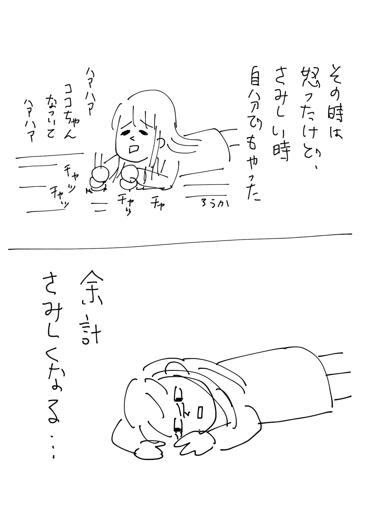 犬の足音かわいいって話 2020年05月01日 すぐこういう罠やる(だいたい引っかかる)愛している!愛している! ↓読者登録すると、LINE通知で更新情報が届きます↓応援クリック嬉しいです!おもしろ日記ランキングにほんブログ村 「兄」カテゴリの最新記事 タグ :#犬#兄 < 前の記事次の記事 > コメント コメント一覧 (23) 1. hfhr 2020年05月01日 18:25 そこで「お兄様がかわいい」となって兄への愛が深まるというふうにはならないですか 0 恵水 がしました 2. 恵水 2020年05月01日 18:26 >>1 兄は犬じゃないし… 0 恵水 がしました 19. hfhr 2020年05月30日 07:49 >>2 大切なお兄様を犬と一緒にして申し訳ありませんでした orz 0 恵水 がしました 20. 恵水 2020年05月30日 11:23 >>19 逆です 犬>兄 0 恵水 がしました 3. ろす 2020年05月01日 18:45 作者さんのココ様への愛のお話だいすきです。 ココ様の絵もとてもかわいいです。 0 恵水 がしました 10. 恵水 2020年05月05日 02:35 >>3 ココさま一番犬っぽくなるように描き直してるのでうれしいです!!! 0 恵水 がしました 4. てんてん 2020年05月01日 18:54 うちもダックスいてます。おココ様の記事細かすぎ変態具合いつもうちの姉妹と一緒だなと思いおかしいのは自分ところだけじゃないと勝手に親近感わいています。因みにおなかに顔うずめてイヌ吸いするのと耳の匂い嗅いではぁはぁしております。 0 恵水 がしました 11. 恵水 2020年05月05日 02:39 >>4 そんな細かいつもりないんですが細かいんですかね 良い趣味をしていらっしゃる 0 恵水 がしました 5. さっと 2020年05月01日 19:37 犬の音いいですよね、わかりみが深いです😚 そして人工的に出せたなんて!さすがお兄さん(笑) 音は可愛いのですが、踏まれたら痛かったことを思い出しましたU^ェ^U 余談ですが私は肉球の香ばしい匂いを嗅ぐのも好きです! 0 恵水 がしました 12. 恵水 2020年05月05日 02:40 >>5 時々そうやって犬が来たと勘違いさせるので本当に困りました 肉球もいいですね!別に思ったより柔らかくない肉球 0 恵水 がしました 6. りんご 2020年05月01日 19:46 犬の音わかる😂 あにーー!!好きやー😂 0 恵水 がしました 13. 恵水 2020年05月05日 02:43 >>6 犬を好きって言うんじゃないんですかw 0 恵水 がしました 7. 犬好き丸 2020年05月02日 00:12 犬の足音、わかります笑 我が家もフローリングなので…笑 我が家もココさんと同じダックスなのですが、去年急に腰を悪くしてしまい…(もう14歳なのです) フローリング床の場合、ある程度年齢がいったらカーペットなどを敷くと犬に優しいかもしれません(敷いていたらすみません)。 0 恵水 がしました 14. 恵水 2020年05月05日 03:01 >>7 おやさしいアドバイスありがとうございます^^ ダックスは腰悪くしやすいみたいですね、うちはそれ対策で子犬のときから獣医さんにおやつはにぼし推奨されました 0 恵水 がしました 8. 名前 2020年05月02日 08:44 ココ様 ↑↓? ↑ ↑好き‼︎ 恵水先生 ↑ ↑ 面白い ↑ 兄 0 恵水 がしました 15. 恵水 2020年05月05日 03:03 >>8 とりあえず犬に全方位から「好き」です 0 恵水 がしました 9. 雛 2020年05月02日 09:32 おココ様かわいいですね! そしておココ様を愛でる恵水さんにもキュンキュンします! 0 恵水 がしました 16. 恵水 2020年05月05日 03:03 >>9 かわいいですよね!ありがとうございます!! 犬は最高です 私にはどっちでもいいです! 0 恵水 がしました 17. 匿名 2020年05月10日 11:57 素晴らしい愛です❤️ 元々トリマーとして働いておりましたが、そのフローリングを歩く音がうるさいから爪を根元から切ってくれとおっしゃる方が昔から一定数います… 私は何がなんでもお断りしてましたが、なぜ人によってこうも感覚って違うのでしょうね😭 0 恵水 がしました 18. 恵水 2020年05月19日 11:53 >>17 トリマーさん! ココさまはスムースで毛が伸びないのでお世話になったことがないのですが、そんな層が一定数いることにショックです。生き物をなんだと思ってるんだ… 0 恵水 がしました 21. ある。 2020年06月05日 08:11 わかる!わかるよソレ!! だけどそばにいないから尚更わかる!! だけどそばにいるとお互いほったらかしなんだよね 0 恵水 がしました 22. ぽにょ。 2021年06月05日 15:56 マジで結構お兄さん好きです。 こんなお兄ちゃん欲しかったなー。。。 0 恵水 がしました 23. Twitterから来ました 2024年01月16日 01:32 兄回と犬回が特に好きなのですが、特にこの話が好きです^^ 0 恵水 がしました コメントフォーム 名前 コメント 記事の評価 リセット リセット 顔 星 情報を記憶 コメントを投稿する