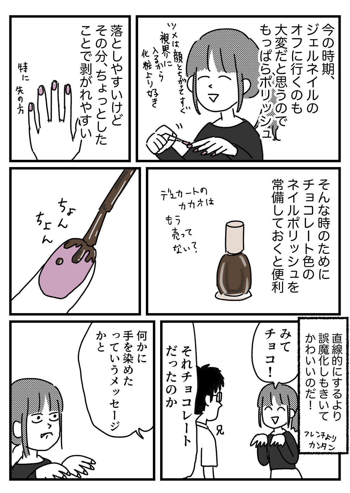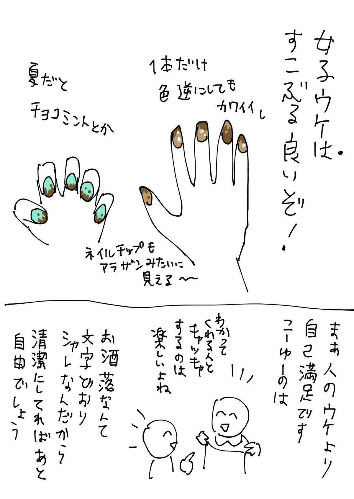 題名だけ見たときは溶かしたチョコに指突っ込んだらチョコネイルになるよ!って話かと思ったのでホッとしました