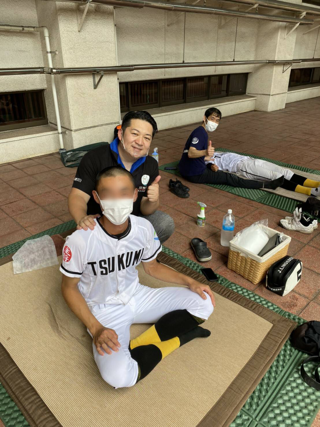 腱引きを受けてる球児たち、ぼかしてしまいましたが皆とっても良い笑顔です。