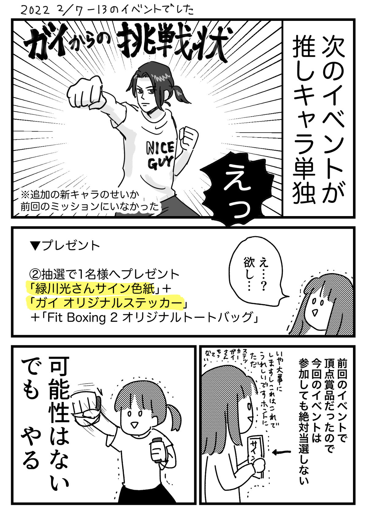 運が良すぎるけど運が悪い話 2022年03月05日 為さねば成らぬならばまずは為すのだ成らぬとも いままでのフィットボクシング関連記事 こちらのイベントで大当たりですサイン豪華過ぎる…!ただ私第一弾でもステッカーが当選して、エヴァンだけ友人にあげたのでそれ以外全部二枚ずつあります、どうしようかなババ抜き出来ますね↓読者登録すると、LINE通知で更新情報が届きます↓応援クリック嬉しいです!おもしろ日記ランキングにほんブログ村 「ゲーム」カテゴリの最新記事 タグ :#フィットボクシング2 < 前の記事次の記事 > コメント コメントフォーム 名前 コメント 記事の評価 リセット リセット 顔 星 情報を記憶 コメントを投稿する