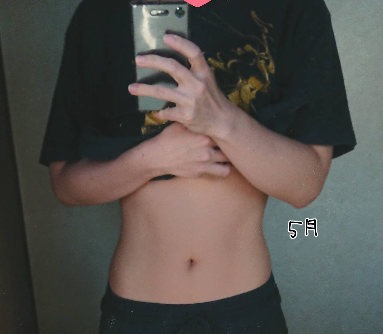 上にかぶさる脂肪があるので割れた腹筋さんとはまだ対面出来ていません。