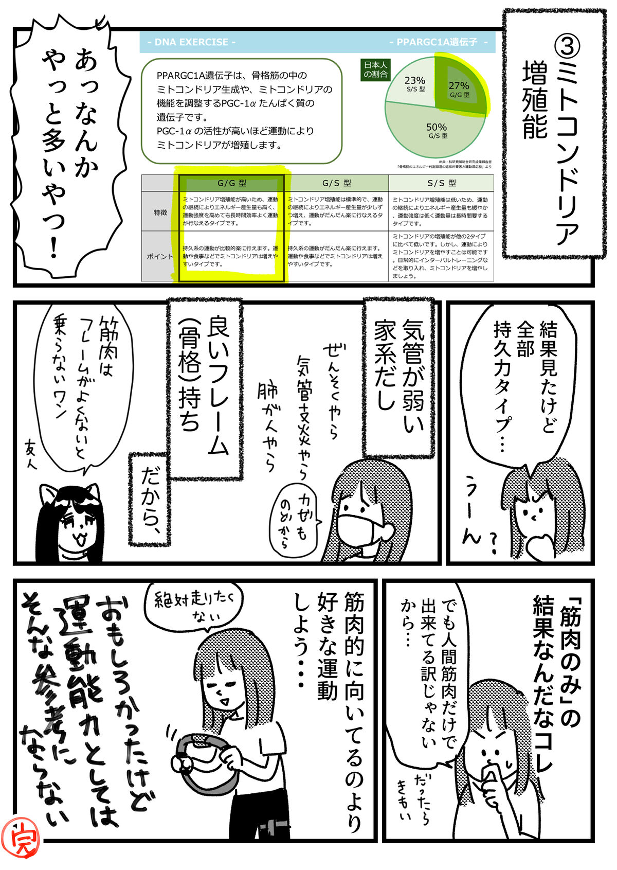 私の筋肉君は持久力系の運動が好きでパワーはないみたいだけど