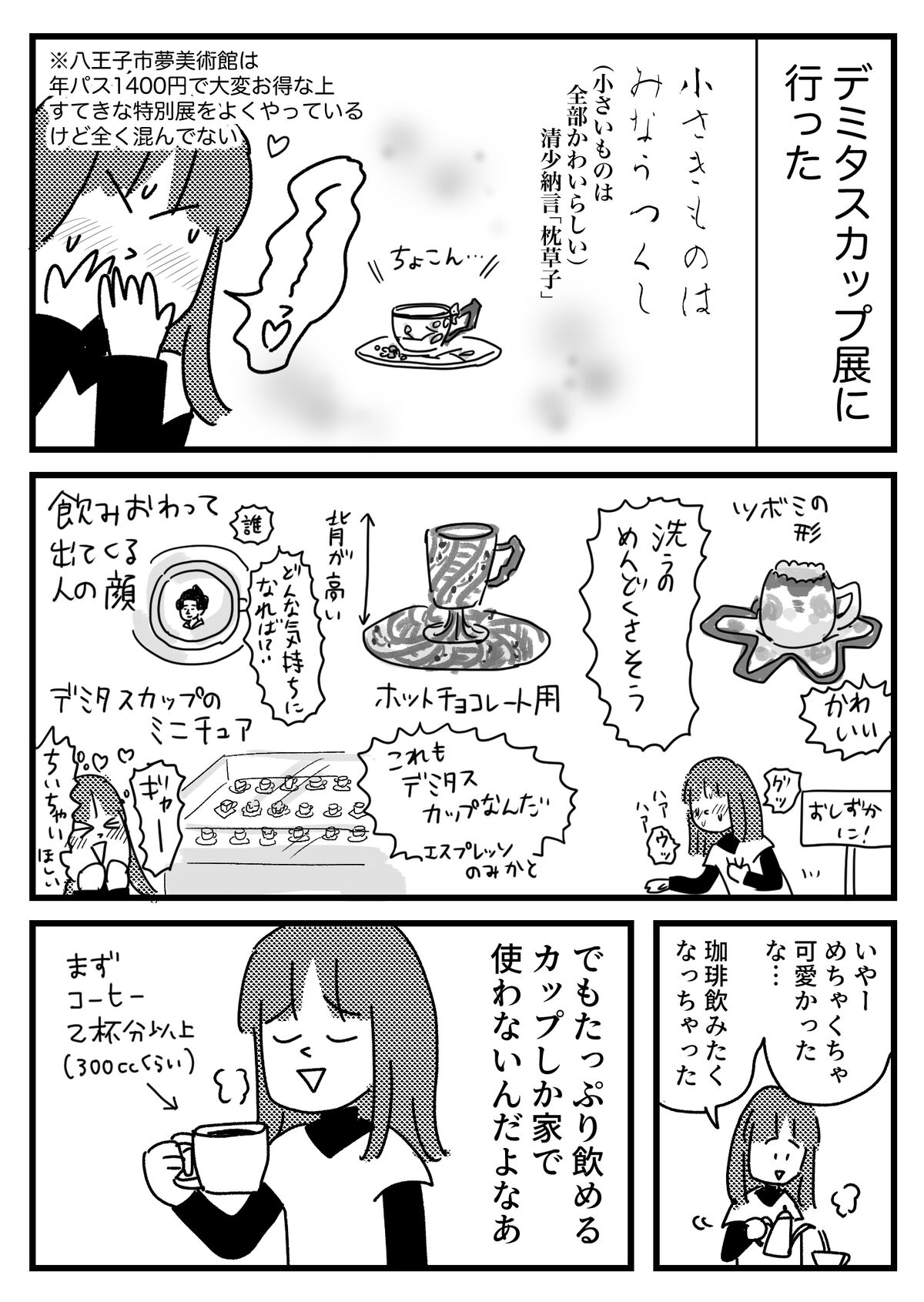 デミタスカップかわいいけど使いこなせない話 2022年10月15日 エスプレッソ少量で優雅に過ごす習慣が、ない…(ゴクゴク) 見応えたっぷりでした♡はあはあ 前回記事の一件コメント返信今までの人生で兄か無理やり聴かせた人しかこの話題出来ませんでした!!!!!!ありがとうございます、ペンタくんの絵本は確かにあったんだVoicyさんでゆるいラジオ始めました!リクエストは質問箱からいつでも受付中!↓読者登録すると、LINE通知で更新情報が届きます↓応援クリック嬉しいです!おもしろ日記ランキングにほんブログ村 「お出かけ」カテゴリの最新記事 < 前の記事次の記事 > コメント コメント一覧 (7) 1. 習慣 2022年10月15日 20:54 イタリア旅行に行ったときにの、 1ユーロで飲めるデミタスカップのエスプレッソは美味しかったっす 観光中にふらっとバルに寄ってワンコイン置いて、立ち飲みで、ぐいっと飲んで、次の目的地に向かう、みたいな感じです あんな気軽な感じで飲めるところがあったら習慣になりそうですね 0 恵水 がしました 2. 習慣 2022年10月15日 20:54 イタリア旅行に行ったときの、 1ユーロで飲めるデミタスカップのエスプレッソは美味しかったっす 観光中にふらっとバルに寄ってワンコイン置いて、立ち飲みで、ぐいっと飲んで、次の目的地に向かう、みたいな感じです あんな気軽な感じで飲めるところがあったら習慣になりそうですね 0 恵水 がしました 3. げ 2022年10月15日 20:55 エラー出てなぜか2回書き込まれました 申し訳ない 0 恵水 がしました 4. ぐい呑み 2022年10月15日 21:28 だと思う エスプレッソをザラザラの砂糖を溶かさずに ぐいっと気付け薬みたいに飲み干して 底に残ったキャンディのような砂糖を舐める チェイサー?にドリップコーヒーを飲む みたいな感じ 某コーヒーショップで一時期 よくやってました 変な客だと思う 0 恵水 がしました 5. おいも 2022年10月15日 21:59 小さくてかわいいカップ憧れますよね・・・ でも自分の性格を考えると割れにくくて大きいものしか買えないです😂 0 恵水 がしました 6. ゆう 2022年10月15日 22:18 夢美術館市民です笑 デミタスカップのポスター見た時 絶対恵水さん好きよね、、♡って思ってたから 今回のブログは個人的にキターーーーってなりました笑笑 0 恵水 がしました 7. 野暮な人 2022年10月18日 13:44 黒酢飲むのに使われたりするなあ…… 0 恵水 がしました コメントフォーム 名前 コメント 記事の評価 リセット リセット 顔 星 情報を記憶 コメントを投稿する