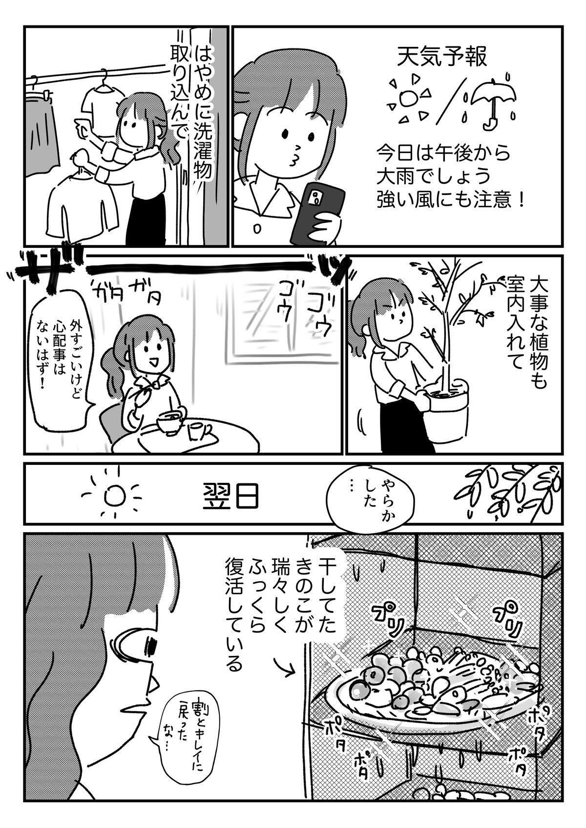 雨にぬれてふっくらプリプリつやつやした絵が美味しそうで、きのこ食べたくなりました