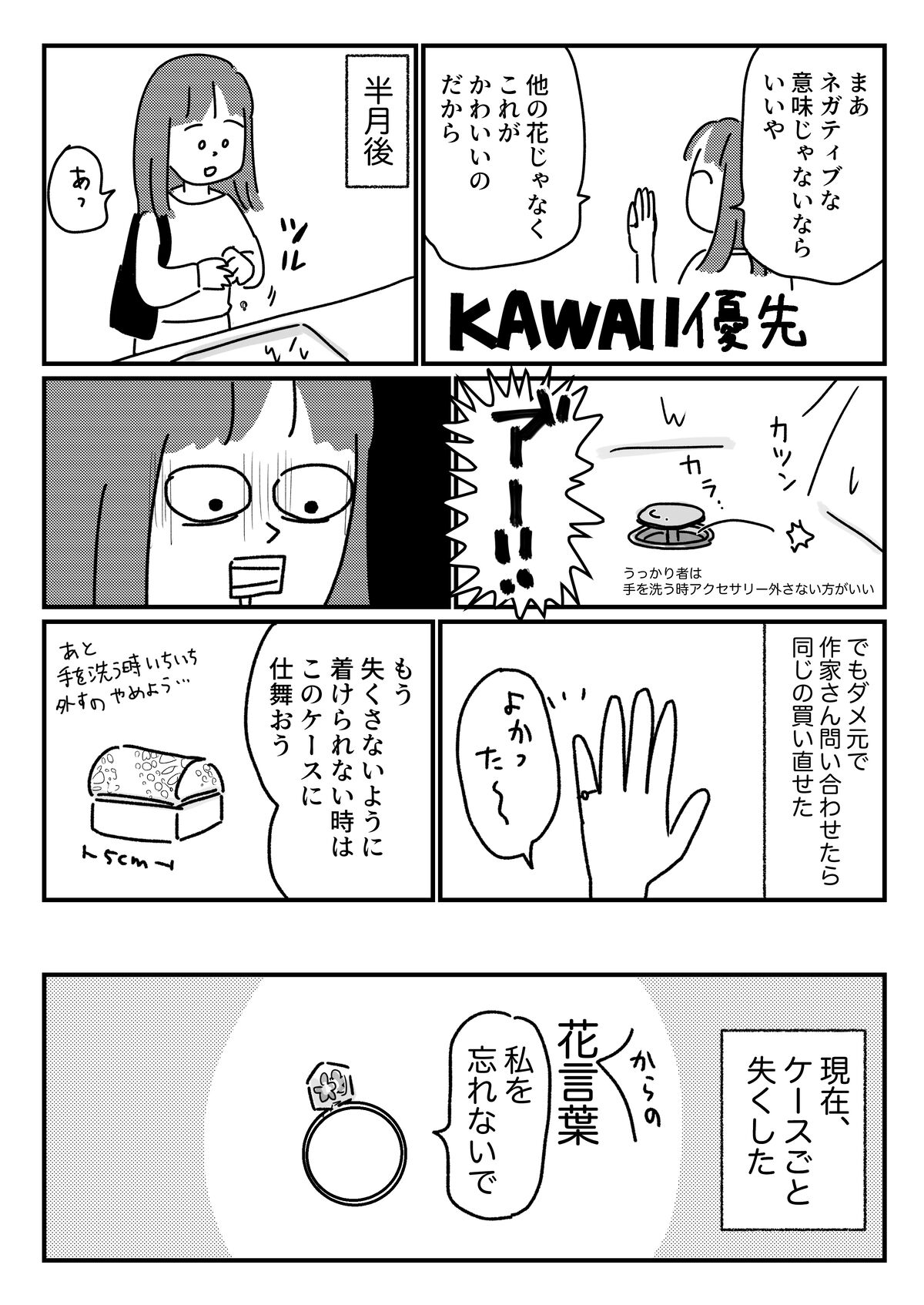 それはそうと、なくしたアクセサリーの話は共感しかないですね。始め悲しく、やがてむなしくなるんですよね…なんか