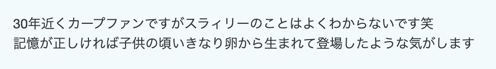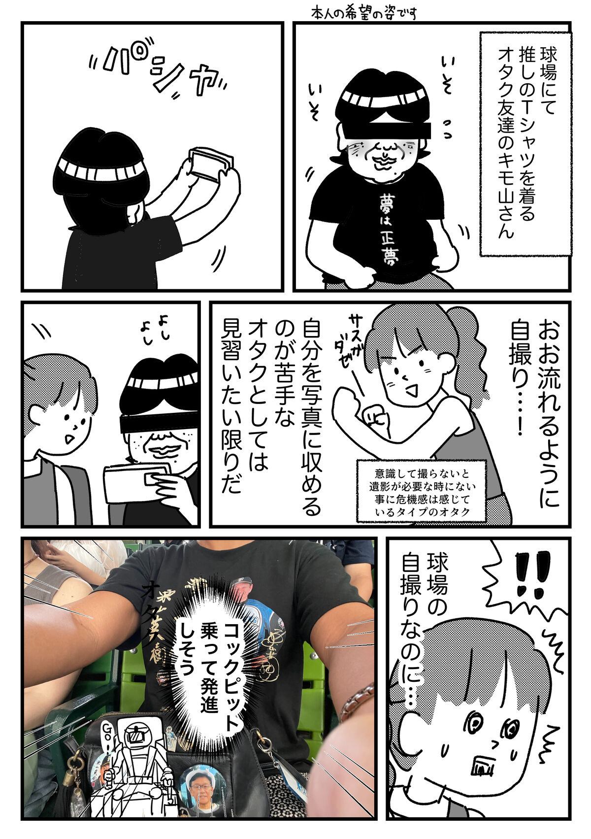 にじみ出るオタクの自撮り 2024年09月06日 推しを撮りたくてカメラの位置がそっちに寄るのが原因(わかるよ)私はいつもいつも写真撮ろう、と言い出す事をせず、その後犬耳おばさん来て3人で写真撮りました、犬耳おばさんがそこらへん一番ちゃんとしてるこの3Dプリンタで作られた顔が公式グッズということに驚いたなんでもあるんですね、このジャンル前回記事の1件コメント返信 誕生シーン?あるんだ…情報増えるほどわからない、わからない…↓読者登録すると、通知で更新情報が届きます!(ライブドアアプリをインストールする必要があります)InstagramXthreads(スレッズ)Bluesky(ブルースカイ)↑最近Xが危ういので記事更新SNS色々↑↓応援クリック嬉しいです!おもしろ日記ランキングにほんブログ村 「オタク」カテゴリの最新記事 タグ :#キモ山さん < 前の記事次の記事 > コメント コメント一覧 (4) 1. tui 2024年09月06日 20:58 界隈事にグッズって様々で見てて楽しいですね〜 ブログ更新される度にスラィリーの事が気になって仕方ないのですが、個人的にバートを初めて見た時の衝撃も凄かったです(笑) 0 恵水 がしました 2. a 2024年09月06日 21:23 恵水さんのおかげでうちらもどんどんスラィリーに詳しくなる。 スラィリーの受動喫煙。 0 恵水 がしました 3. めんま 2024年09月06日 21:33 キモ山さんは栗山監督がお好きなんですね! 名監督ですが、発言がいい意味で気持ち悪い事で有名だったりします(ネットに語録集があったりする) 私も大好きです。 グッズは球団毎に特徴があって面白いですが、カープは3色とも赤の3色ボールペンに始まり、選手の頭部の花瓶があったりいい感じに狂ってます。 スラィリーのフルジップパーカーやぴろぴろ笛、写真集もありますよ。 0 恵水 がしました 4. これは 2024年09月06日 21:39 誰の顔も写ってなくて今の時代にはあってるのではと思わされる 遺影は必要 0 恵水 がしました コメントフォーム 名前 コメント 記事の評価 リセット リセット 顔 星 情報を記憶 コメントを投稿する