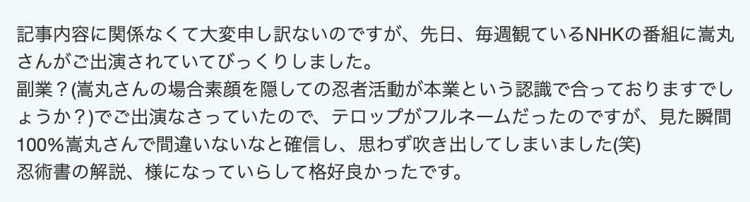 嵩丸さんは三重大の院行ったあたりから素顔も住所も身分も何も全く隠さない忍者活動の人ですね!w