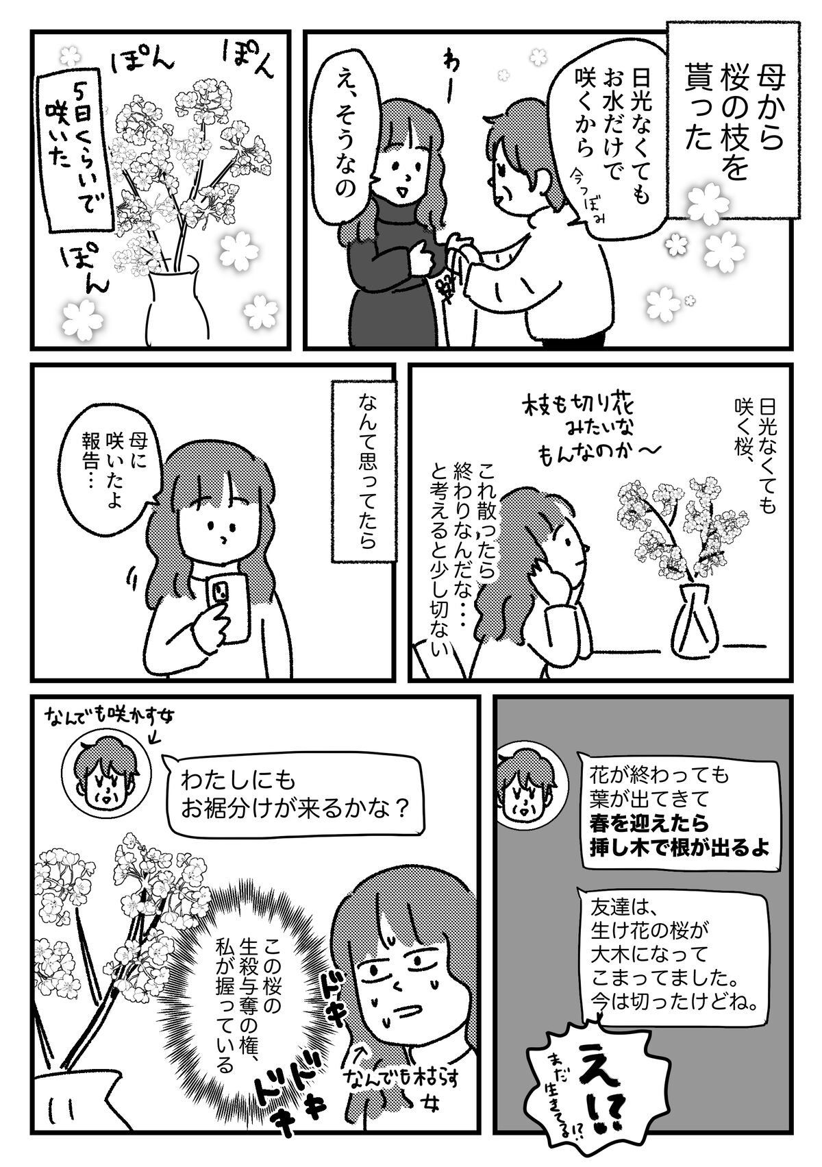 急にプレッシャー 2025年02月11日 生きてるなら日光ないと桜は咲かないと思ってたし、日光なくても咲くならもう復活はしないと思ってたし、急に責任を感じています延命、できるといいな…フライング花見そのものは気分が良い前回記事の1件コメント返信 滅多刺しになると思います!是非観てください!!!興奮してその場で産気づかないことだけ祈ります!↓読者登録すると、通知で更新情報が届きます!(ライブドアアプリをインストールする必要があります)InstagramXthreads(スレッズ)Bluesky(ブルースカイ)↑最近Xが危ういので記事更新SNS色々↑↓応援クリック嬉しいです!おもしろ日記ランキングにほんブログ村 「植物」カテゴリの最新記事 タグ :#母 < 前の記事次の記事 > コメント コメント一覧 (2) 1. ロウバイ 2025年02月12日 20:57 冬の桜かぁ、それもまた風流...なーんて思いながら写真を見たら背景の情報量が多くて桜が目に入って来なくて笑いました。頑張れ桜!長生きしてね桜🌸 0 恵水 がしました 2. ななし 2025年02月12日 21:27 花が散った時点でお母様にバトンタッチして来年まで見て貰えば、きっとまたサクラサク…! いえ、これは恵水さんを信じてないとかではないですよ、ええ、ほ、ほんとですよ? 0 恵水 がしました コメントフォーム 名前 コメント 記事の評価 リセット リセット 顔 星 情報を記憶 コメントを投稿する