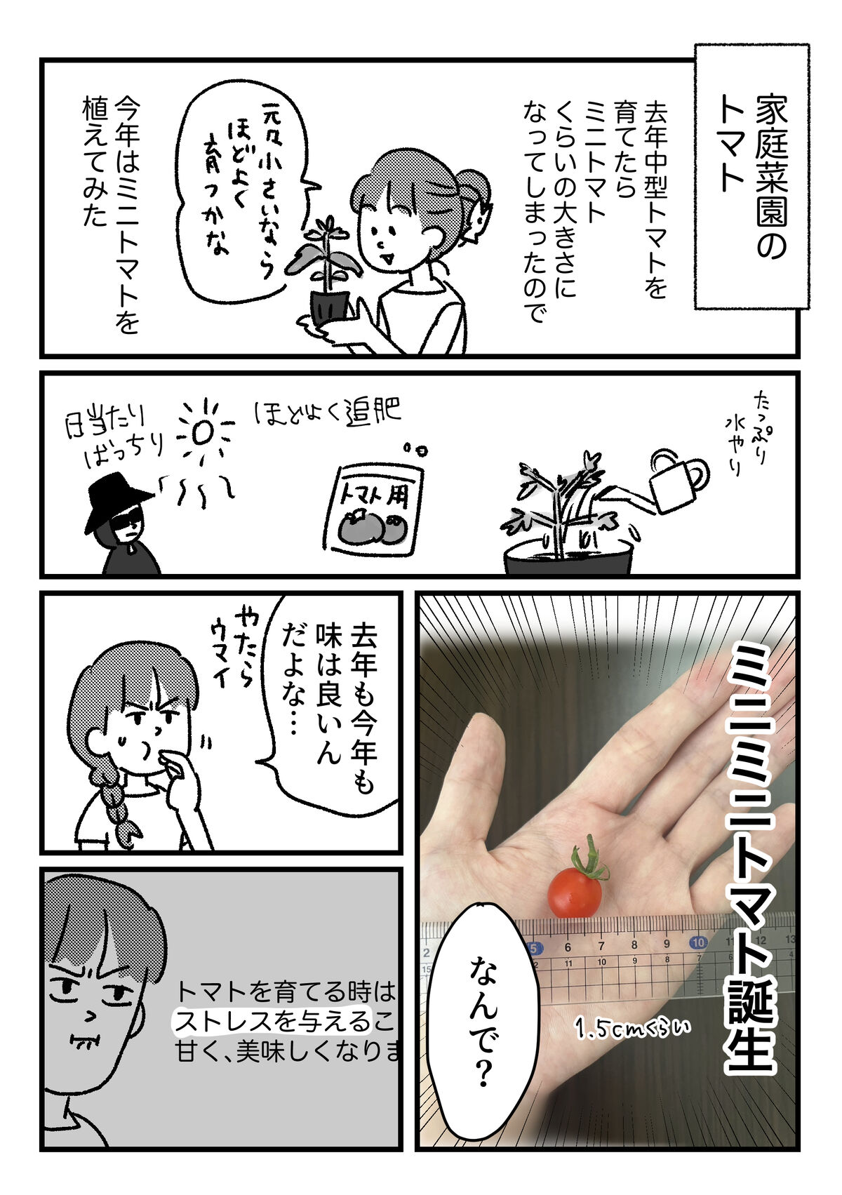 めちゃくちゃ甘やかして育てているが 2025年07月18日 ムッ トマト一年目 トマト二年目美味しいからまあいいんですけど、小さい原因はとりあえず私ということは分かった前回記事の1件コメント返信手が込みすぎてて恵水さん涙ぐましいですね↓読者登録すると、通知で更新情報が届きます!(ライブドアアプリをインストールする必要があります)InstagramXthreads(スレッズ)Bluesky(ブルースカイ)↑最近Xが危ういので記事更新SNS色々↑↓応援クリック嬉しいです!おもしろ日記ランキングにほんブログ村 「植物」カテゴリの最新記事 < 前の記事次の記事 > コメント コメント一覧 (7) 1. たも 2025年07月19日 08:59 ハ〜〜わっかるわっかる ムッ の顔の気持ち 花や実って子孫繁栄の手段ですからヤバイ!って状態にさせろと聞いたことがあります。 それはそれとして肥料は欲しいとは…?? 夏野菜はなんぼあってもええもんですが、やはり恵水さんはめちゃくちゃ手のかかる植物を吟味 0 恵水 がしました 2. たも 2025年07月19日 09:00 すみません、途中送信してしまいました。 吟味されては? 食虫植物、高山植物などなど 0 恵水 がしました 3. ストレス… 2025年07月19日 09:30 お世話の仕方は教科書通りなんだろうなと思うので、 愛情や期待などの圧が重すぎて植物たちにとって多大なストレスになっているのかもですね…。 視線を向けるだけで植物がストレスを感じるレベルの圧があるのかもしれません。 人間だったら親の期待や重圧に潰されて精神面が成長しない優等生の子供みたいな。 0 恵水 がしました 4. ぬ 2025年07月19日 09:32 そんなこと…いやいやほら例年にない酷暑とか、他の理由がきっとほらありますから… 0 恵水 がしました 5. たも 2025年07月19日 10:10 1番めのコメント、恵水さんの言いたいことを読み違えて書き込んでしまいました、すみません。 植物にストレスのかかる環境って必ずしも悪いわけではないので(お描きになっているトマト然り)自分の中の前提が微妙な横滑り起こしてました。 0 恵水 がしました 6. ぜん 2025年07月25日 09:12 逆に全部に愛情を与えられないぐらい、大量に色々育てたら、程よく過多な愛情が薄まって、程よくほったらかしになれるのでは。 0 恵水 がしました 7. あおい 2025年07月31日 21:43 たしか、トマト類は水はたっぷりしない方がよかった気が…笑 0 恵水 がしました コメントフォーム 名前 コメント 記事の評価 リセット リセット 顔 星 情報を記憶 コメントを投稿する