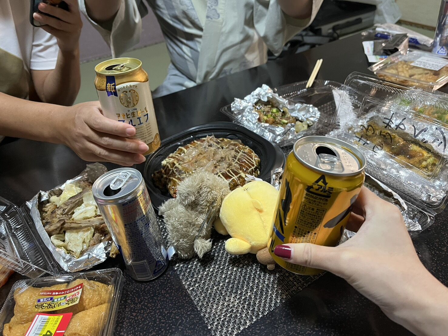 二日目夜は近くのお好み焼き屋さんで大量テイクアウトしてやはり豪遊しました