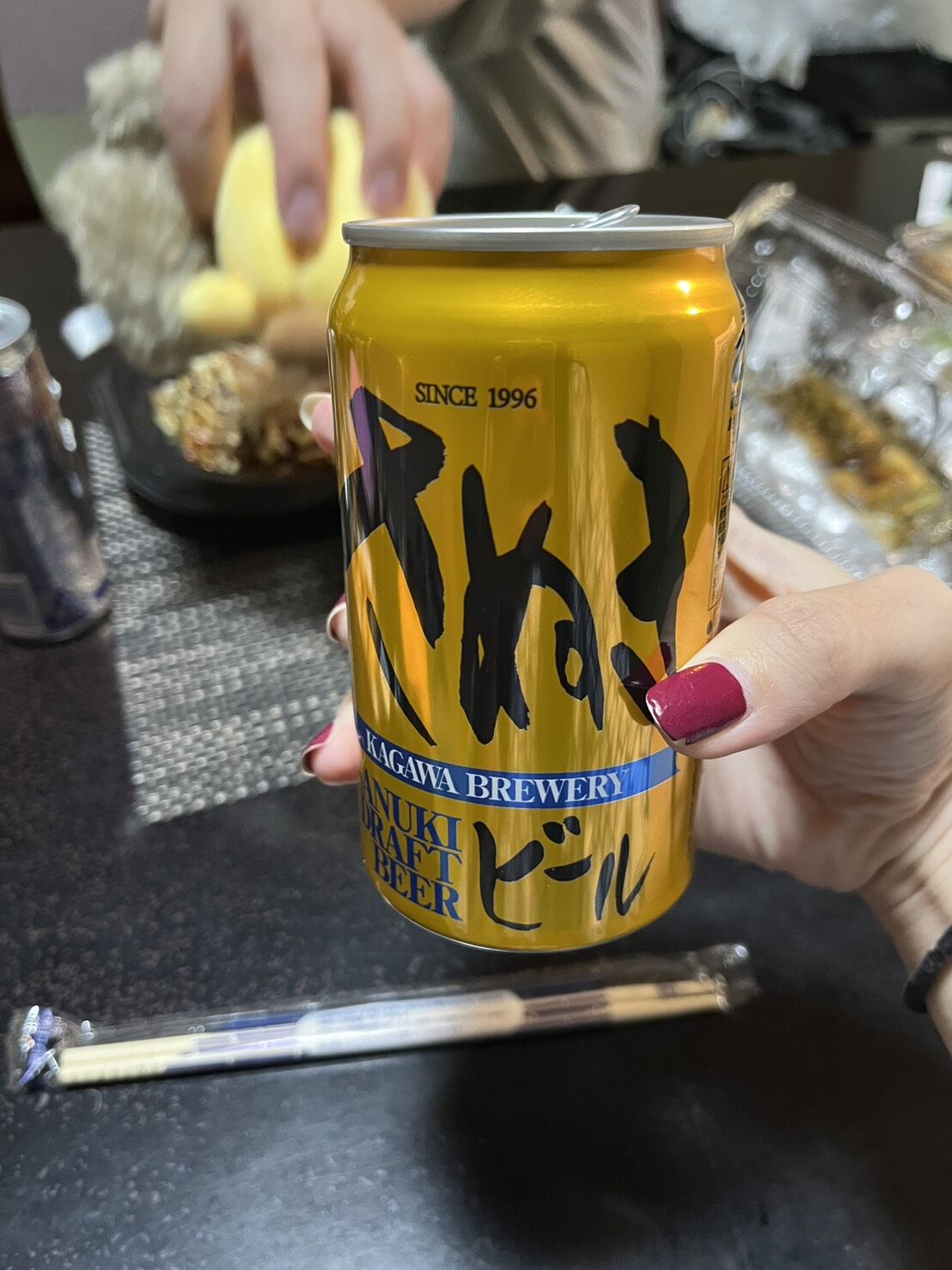 1本ずつなのに麺が長すぎて笑っている(腹もきつくなっている)