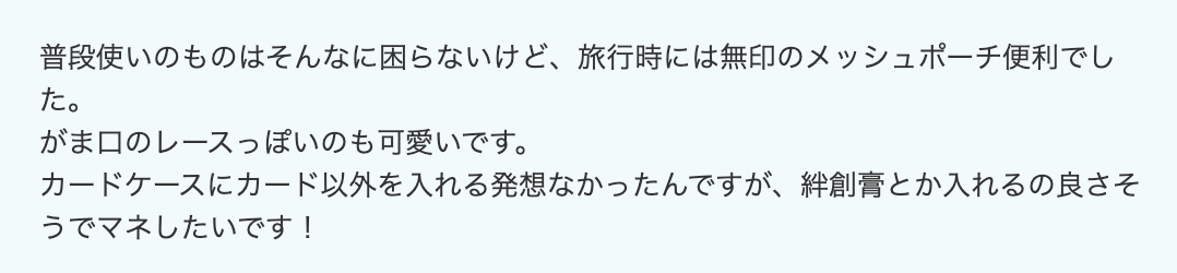 無印!割と最近?でた、この見える部分見えない部分両方ある巾着とかも、
